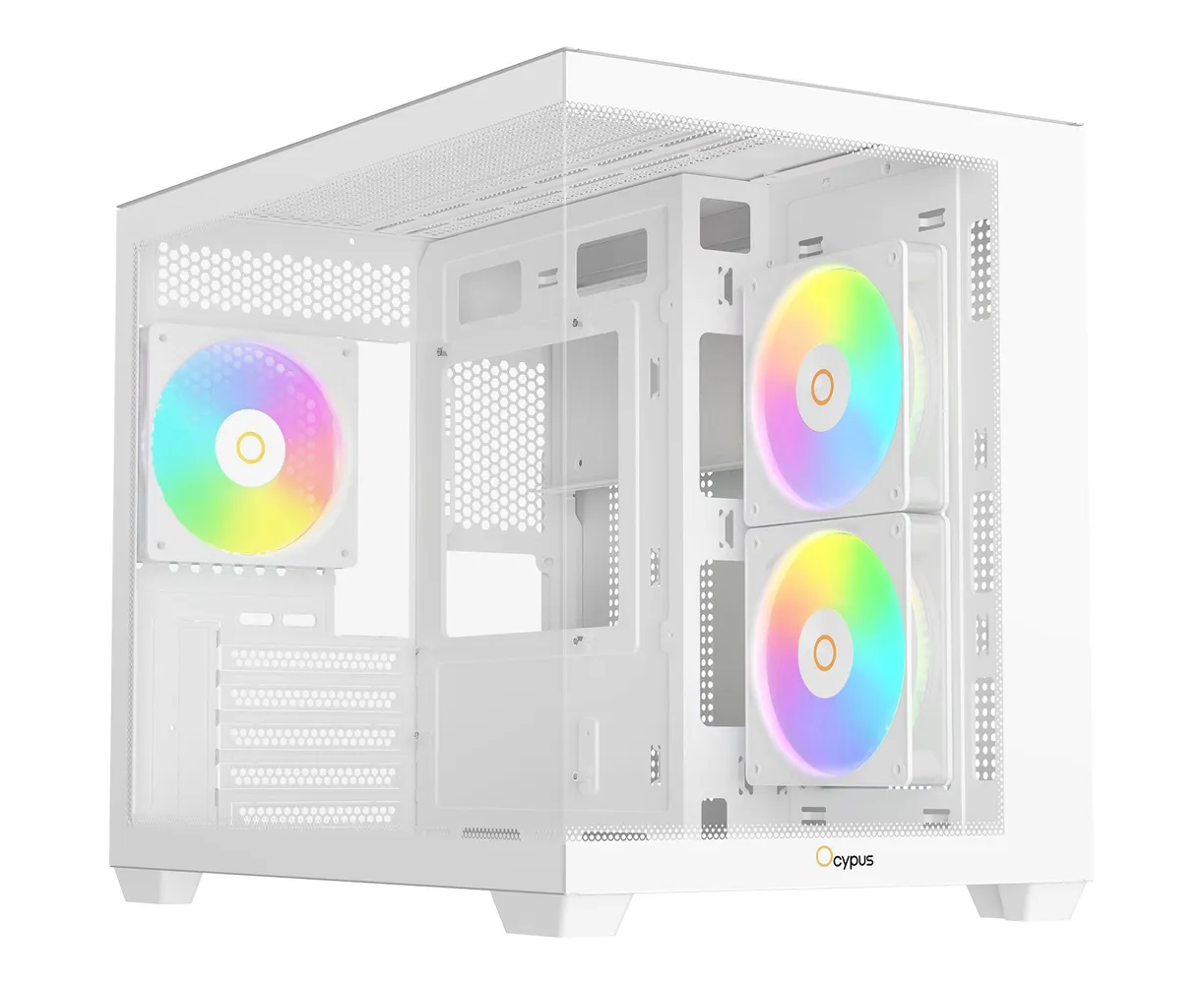Корпус Ocypus Gamma C54 WH ARGB, (Gamma-C54-WHD300XX-GL) без БП, Midi-Tower, TG, 3x120mm 1xUSB-A 3.0 + 2xUSB 2.0, mATX, mITX White