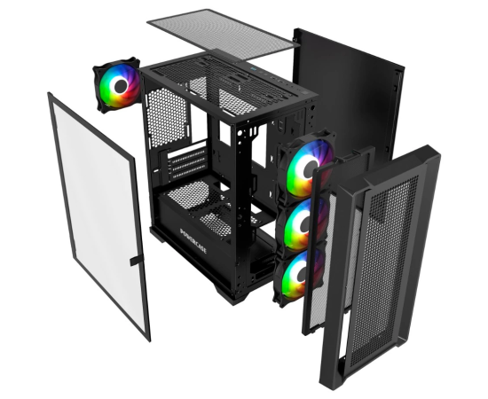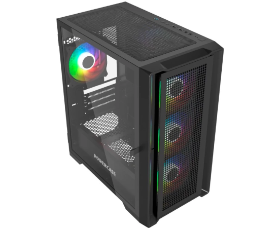 Корпус Powercase Alisio Micro X4B V2 (CAMCXB-A4), Tempered Glass, 4х 120mm ARGB fans, ARGB HUB, чёрный, mATX