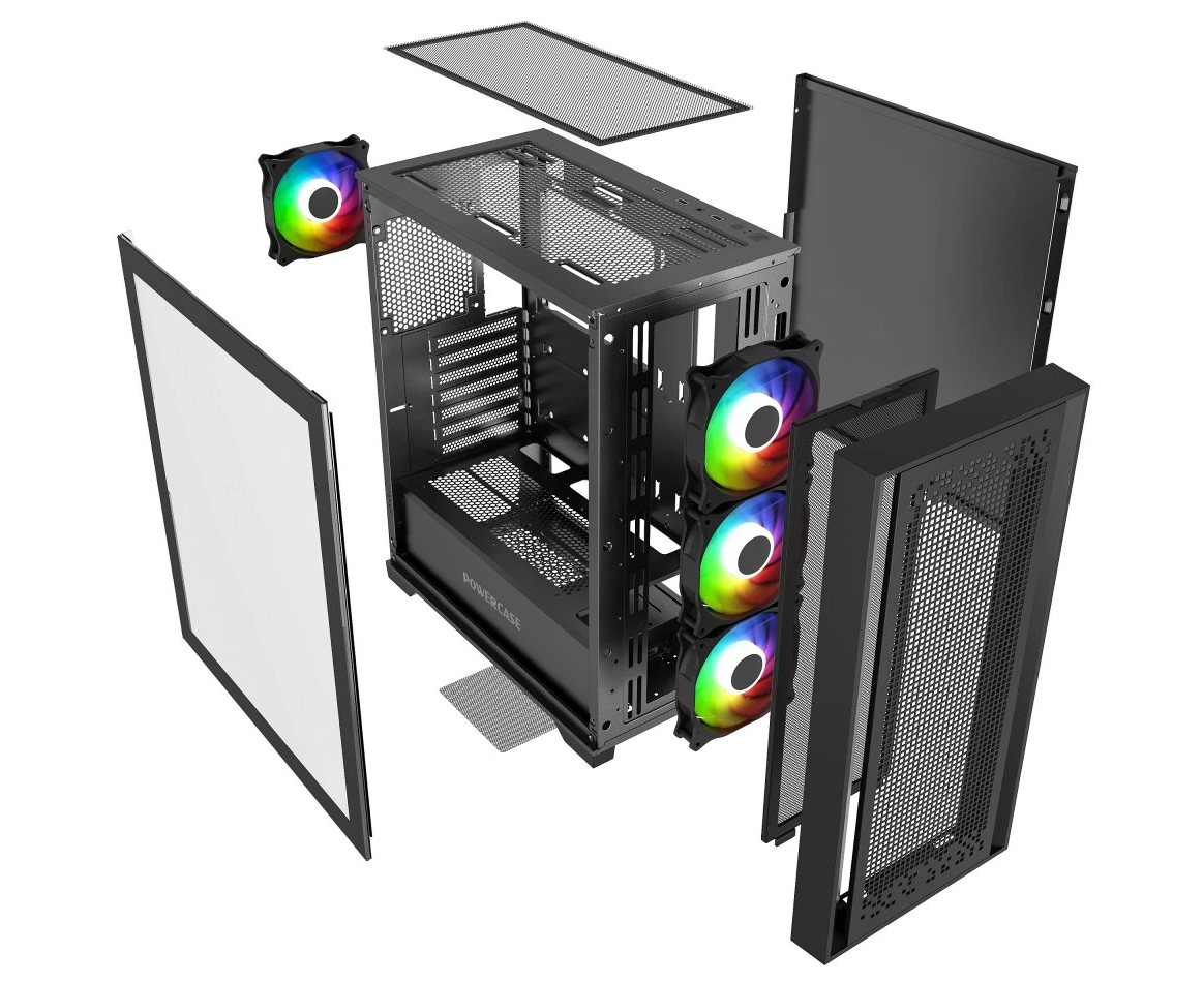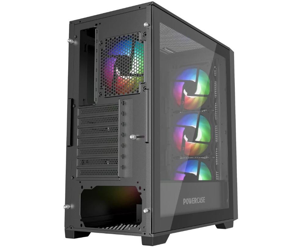 Корпус Powercase ByteFlow Micro Black (CAMBFB-A4), Tempered Glass, 4х 120mm ARGB fans, ARGB HUB, чёрный, mATX