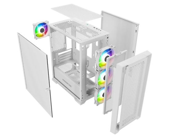 Корпус Powercase ByteFlow Micro White (CAMBFW-A4), Tempered Glass, 4х 120mm ARGB fans, ARGB HUB, белый, mATX
