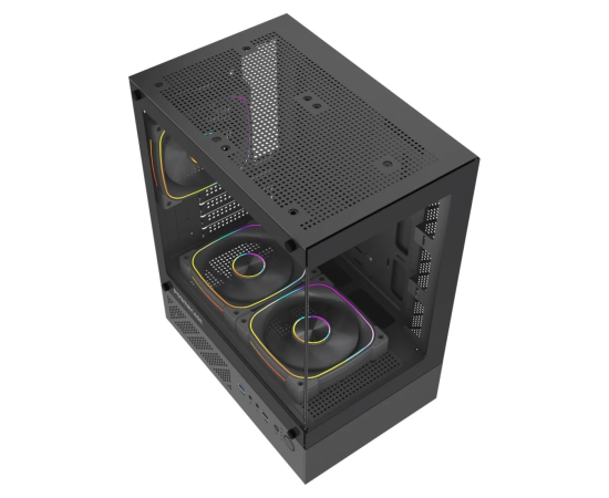 Корпус Powercase Vision Micro M1 ARGB (CVMM1B-A3), Tempered Glass, 3x 120mm ARGB fans, чёрный, mATX