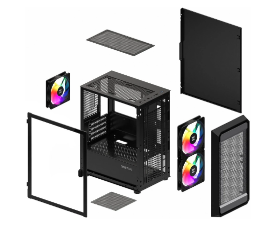 Корпус XASTRA A303M 3ARGB Black (A303M-2FC14A-1FC12A-D) mATX/Mesh tempered glass 2x140mm + 1x120mm ARGB PWM fans Door