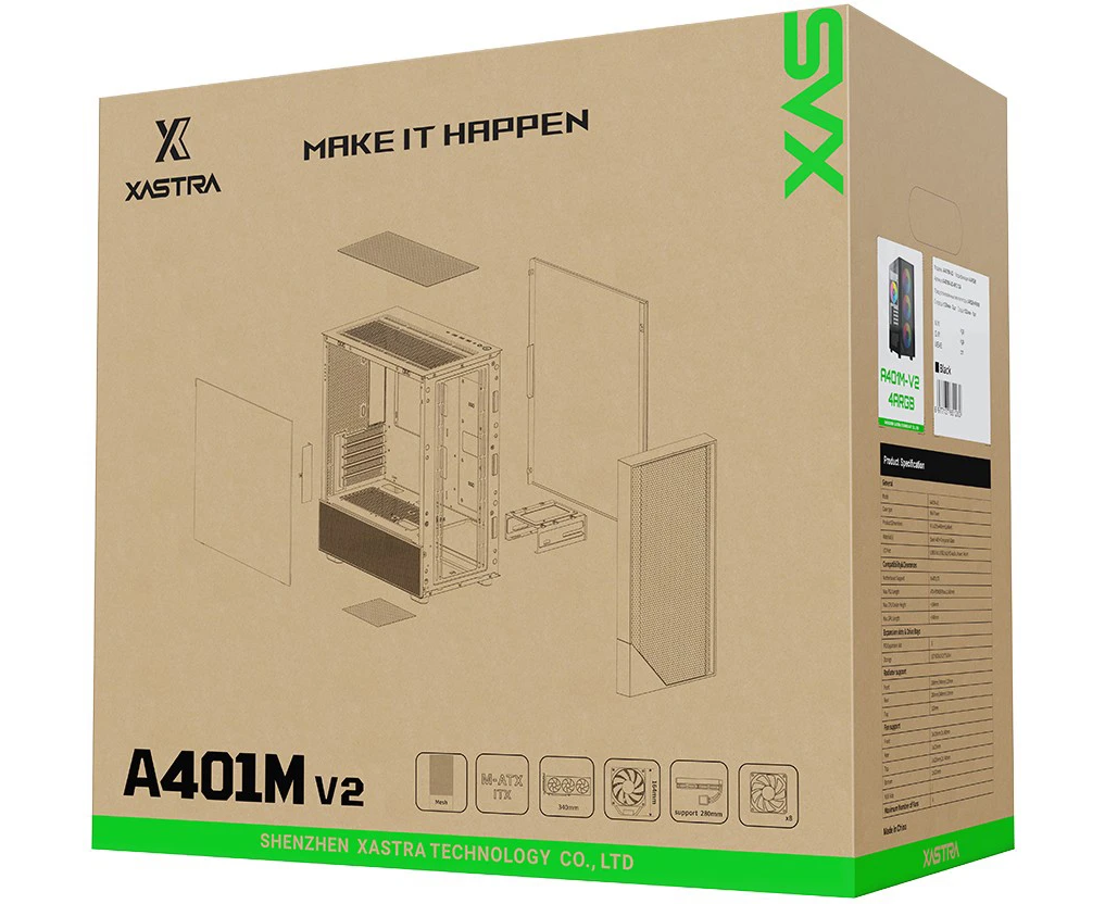 Корпус XASTRA A401M 4ARGB-V2, mATX, Mini-Tower, USB 3.0, ARGB, черный, без БП (A401M-V2-4FC12A)