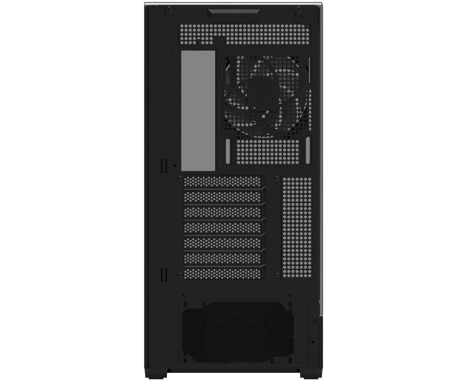 держатель видеокарты в комплекте, установка вентиляторов для охлаждения сокета с обратной стороны сокращает количество мест для HDD/SSD на 2