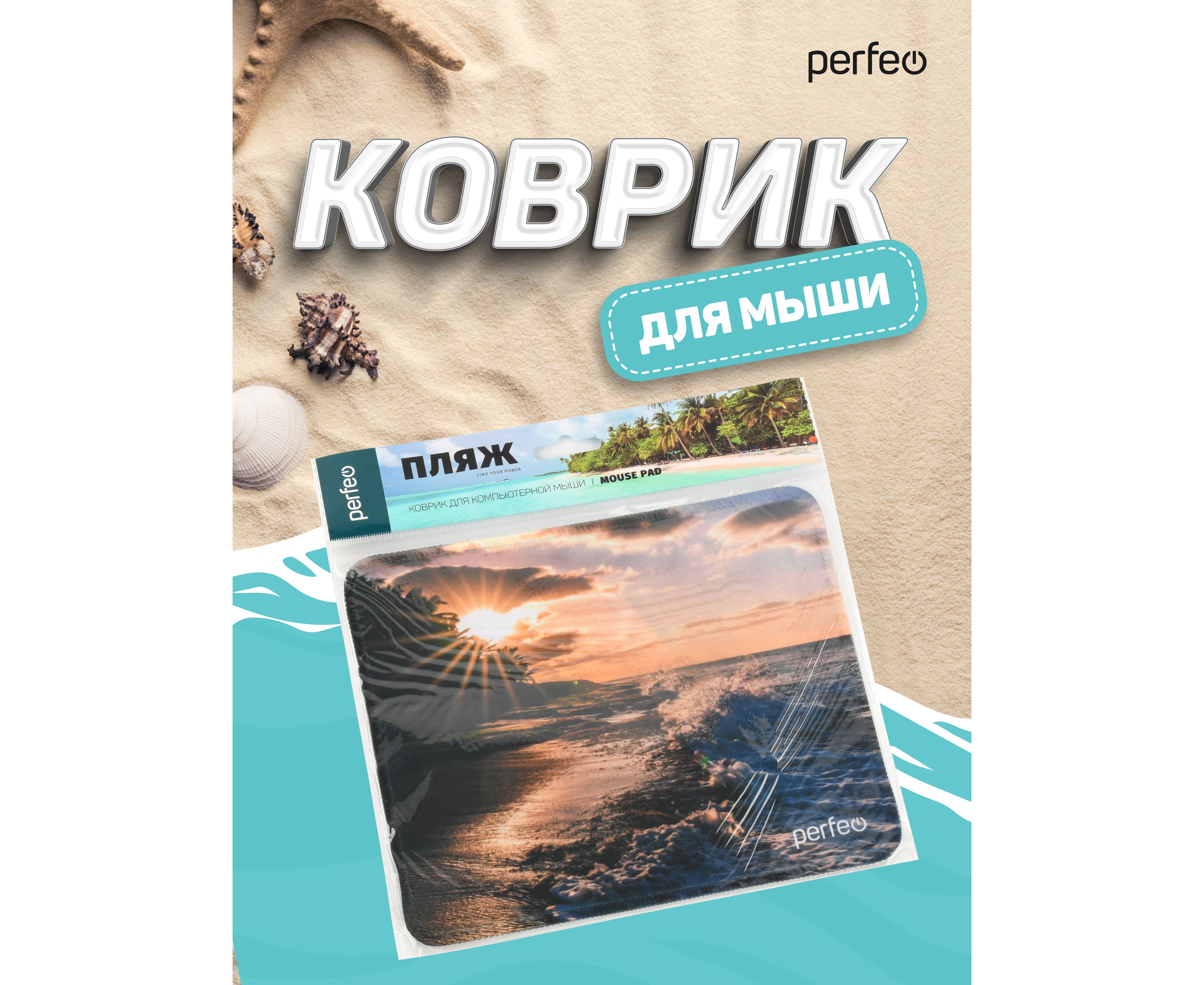 Коврик для компьютерной мыши Perfeo "Пляж", Рис.3 (180*220*2 мм), ткань+резиновое основание