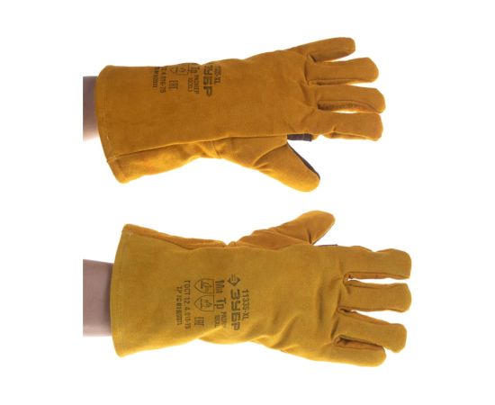 Технические характеристики термостойких краг для сварки и тяжелых механических работ ЗУБР утепленные, спилковые, 350 мм 11335-XL