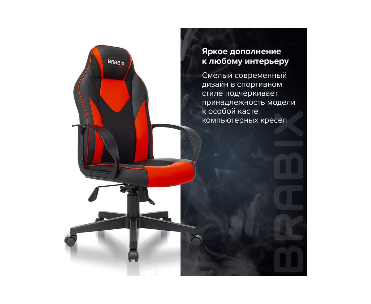 Компьютерное кресло BRABIX Game GM-017, экокожа/ткань, черное/красное 532642 с плотной набивкой и вниманием к деталям. Спортивный дизайн серии Alpha подчеркивает принадлежность к особой касте компьютерных кресел.