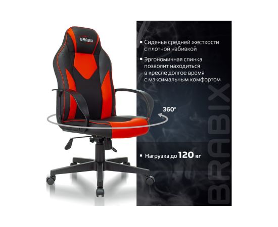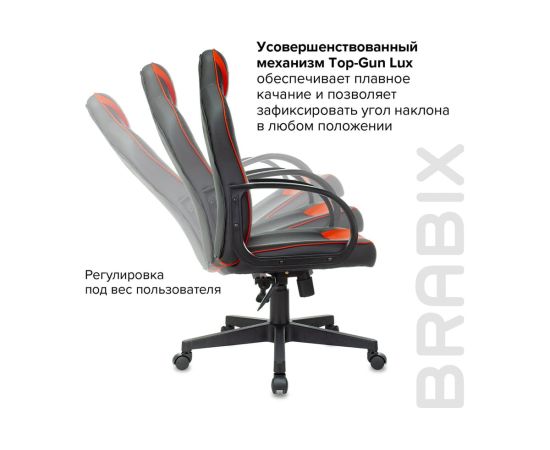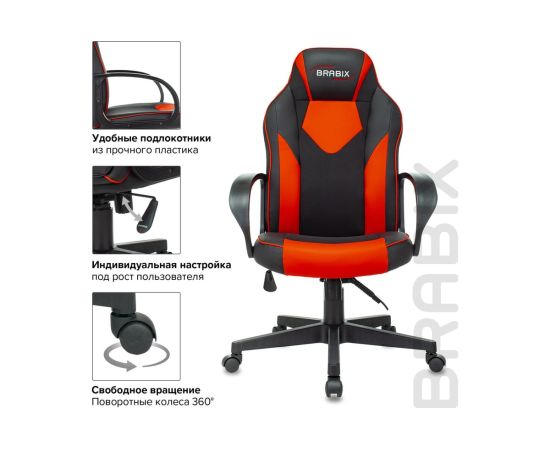 Кресло игровое BRABIX Game GM-017 (532642) экокожа/ткань, черное/красное