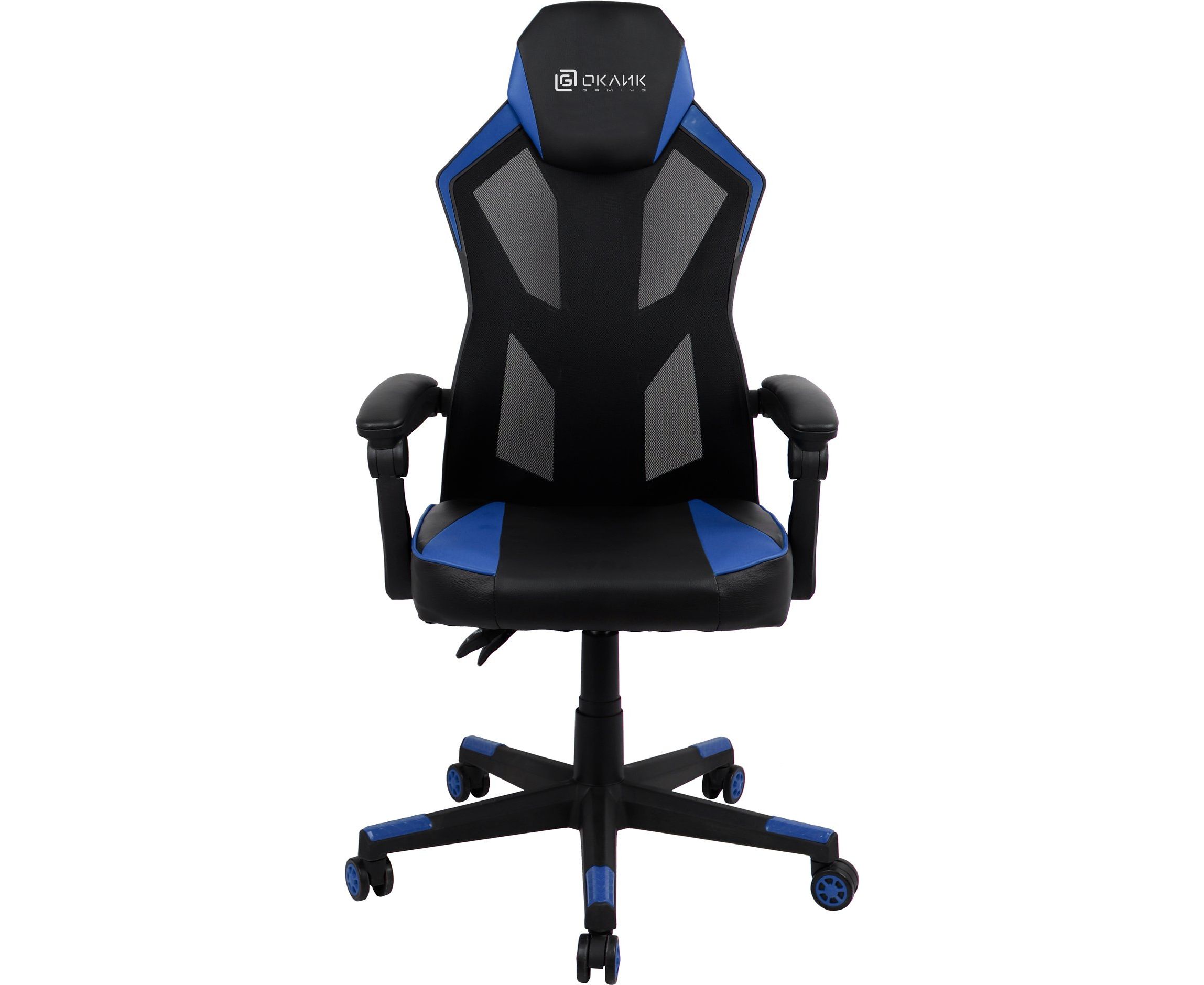 Кресло игровое OKLICK 121G 1987637 черный/синий сиденье черный/синий искусст.кожа/сетка с подголов. крестов. пластик черный