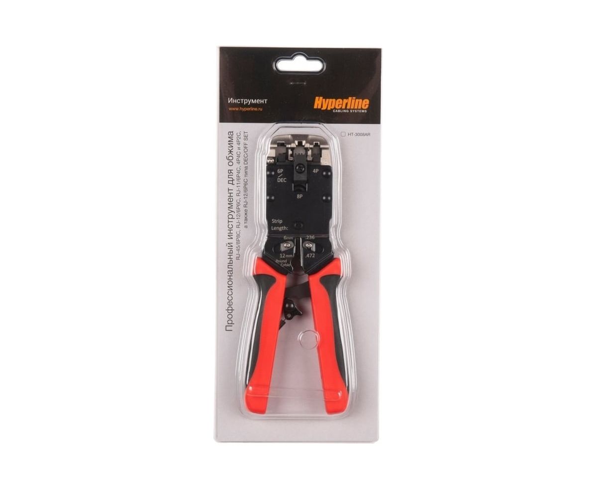 Кримпер Hyperline HT-3008AR с храповым механизмом, RJ-11 (4P4C),RJ-12(6P6C),RJ-45(8P8C),4P4C,4P2C профессиональный