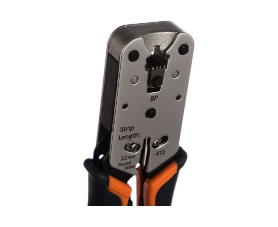 Профессиональный обжимной инструмент Hyperline HT-L2182R прост и удобен в эксплуатации. Он применяется для обжима модульных разъемов RJ-45 (8P8C). Каркас инструмента изготовлен из среднеуглеродистой стали и рассчитан на длительную эксплуатацию. Обжимные губки выполнены из сплава цинка. Хромированное покрытие обеспечивает защиту от коррозии и высокую износостойкость. Диаметр кабеля: 5 - 11 мм.