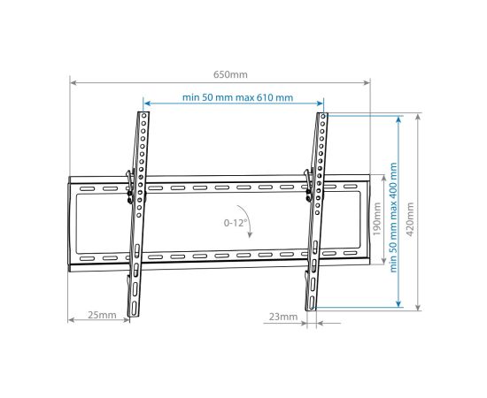 Описание: Кронштейн STEEL-2, для LED/LCD/PLASMA телевизоров 32"-90", max 40 кг, настенный, 1 степень свободы, наклон 0°-12°, от стены 25 мм , max VESA 600×400 мм, крепление направляющей с «двойным крючком».