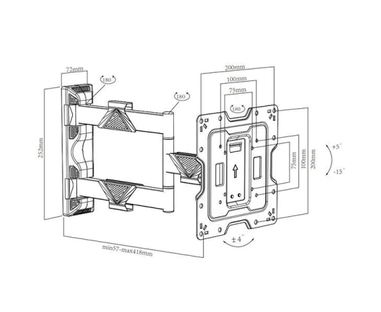 Настенный поворотно-наклонный кронштейн для телевизоров и мониторов с диагональю от 17 до 43 дюймов.