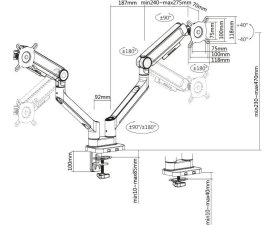 Встроенный пружинный механизм натяжения поможет для идеальной регулировки веса. Съемная пластина VESA позволяет легко устанавливать и снимать монитор.