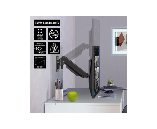 Кронштейн ExeGate EWM1-3410-01G EX297369RUS для одного монитора 13"-34", газовая пружина, VESA 75x75, 100x100, нагрузка 2-10кг