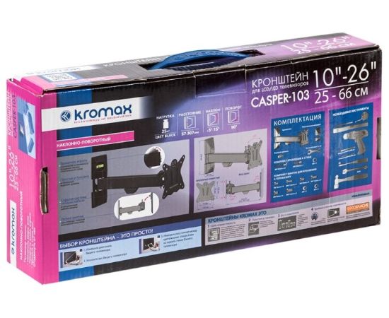 10"-32'' Кронштейн Kromax CASPER-103 Наклонно-поворотный, черный, макс вес 25кг
