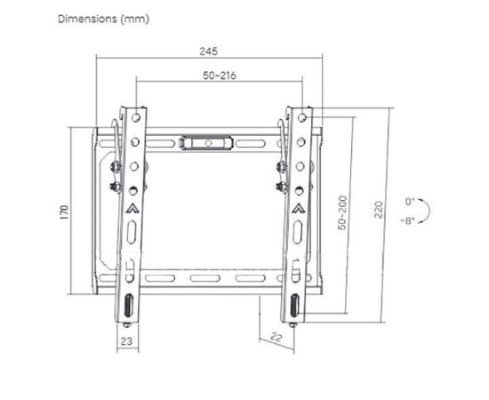 -8° (вниз) / +0° (вверх)