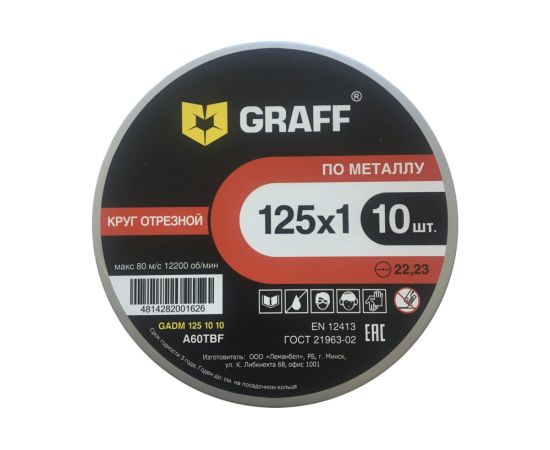 Технические характеристики отрезного круга по металлу GRAFF GADM 125 10 10