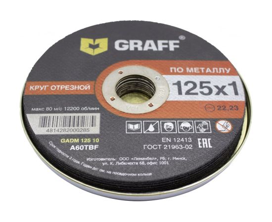 Круг отрезной по металлу GRAFF 9112510 125x1,0x22,23 мм