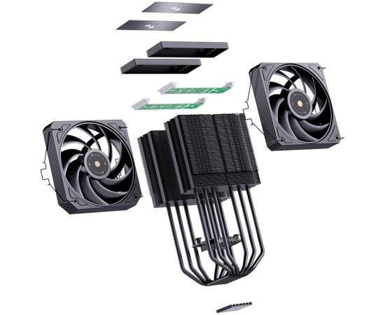 Кулер JONSBO HX6280 Black LGA1851/1700/1200/115X/AM5/AM4 (TDP 280W, PWM, 130mm Black Fan*1, 120mm Black Fan*1, 6 тепловых трубок)