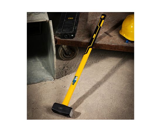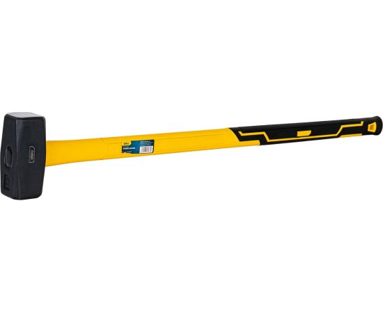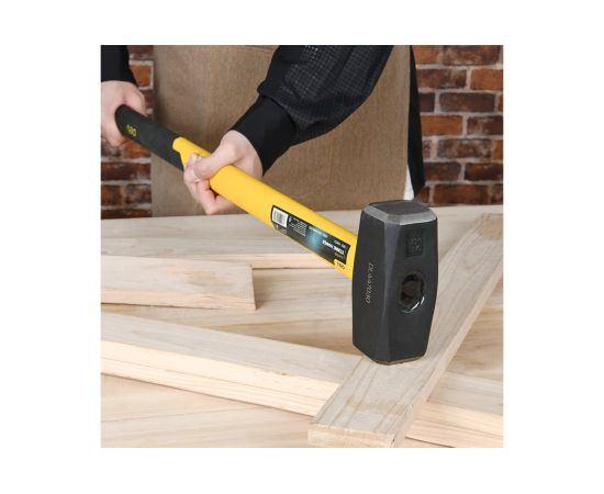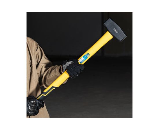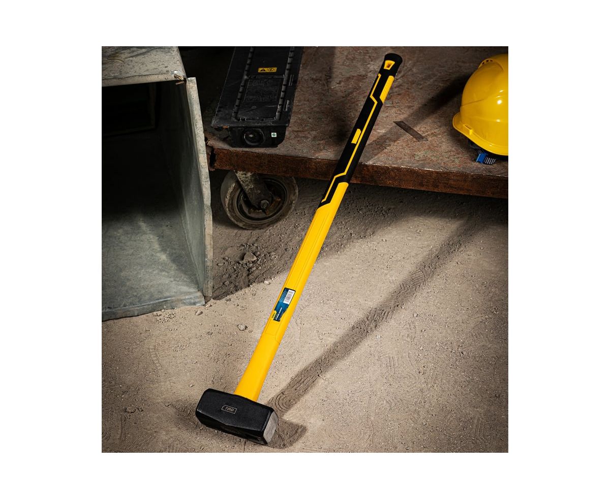 Рукоятка кувалды выполнена из прочного стекловолокна (фибергласс), имеет эргономичную форму, позволяющую удобно и надежно удерживать инструмент при работе и снабжена резиновой накладкой, которая обеспечивают защиту от скольжения и ударов.