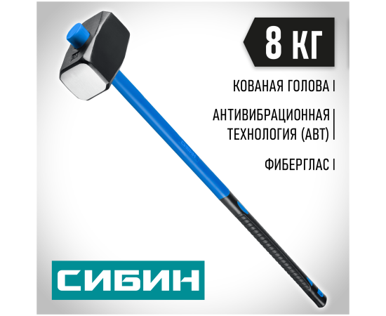Кувалда СИБИН 20134-8 с фиберглассовой рукояткой, обратный всад, 8 кг