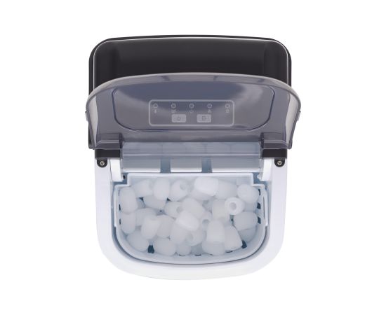 Генератор льда не требует подключения к водопроводу. Просто подключите устройство к сети, добавьте воду в резервуар, и выберите размер льда нажатием кнопки. Цикл приготовления льда длится от 6 до 13 минут, в зависимости от размера кубиков и исходной комнатной температуры. По окончании в корзине для льда окажется свежая порция. Льдогенератор останавливается автоматически, когда корзина для льда заполнена. Емкость для льда легко вынимается.