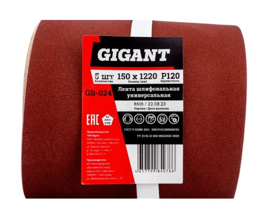 Лента шлифовальная Gigant GB-024 150x1220 120, 5 шт.
