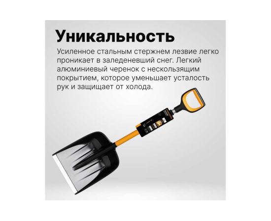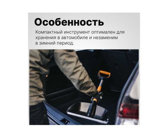 Автомобильная лопата Fiskars X-series 1057393 применяется для очистки территории от снега.
