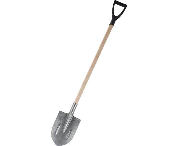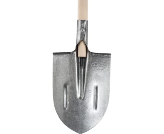 Штыковая лопата применяется для земельных работ. Рабочая часть имеет заостренную форму, которая обеспечивает легкое проникновение лопаты в грунт. Полотно выполнено из прочной рельсовой стали. Для удобства работы предусмотрен деревянный черенок с V-образной ручкой.