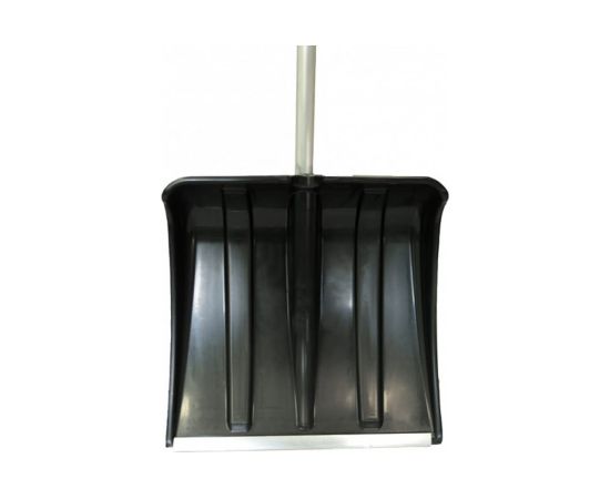 Кромка лопаты защищена специальным алюминиевым профилем с небольшим закруглением по краю. Это позволяет легче убирать снег, где территория не очень ровная.