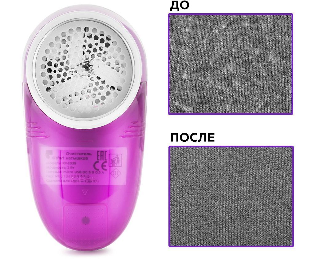 Описание: Иногда из-за частой и неправильной стирки или из-за примеси полиэстера в тканях, появляются катышки на одежде, из-за которых любимая одежда теряет свой первоначальный вид. Очиститель катышков Kitfort КТ-2039 позволит сделать её опять новой!