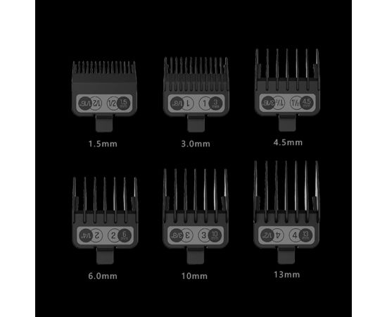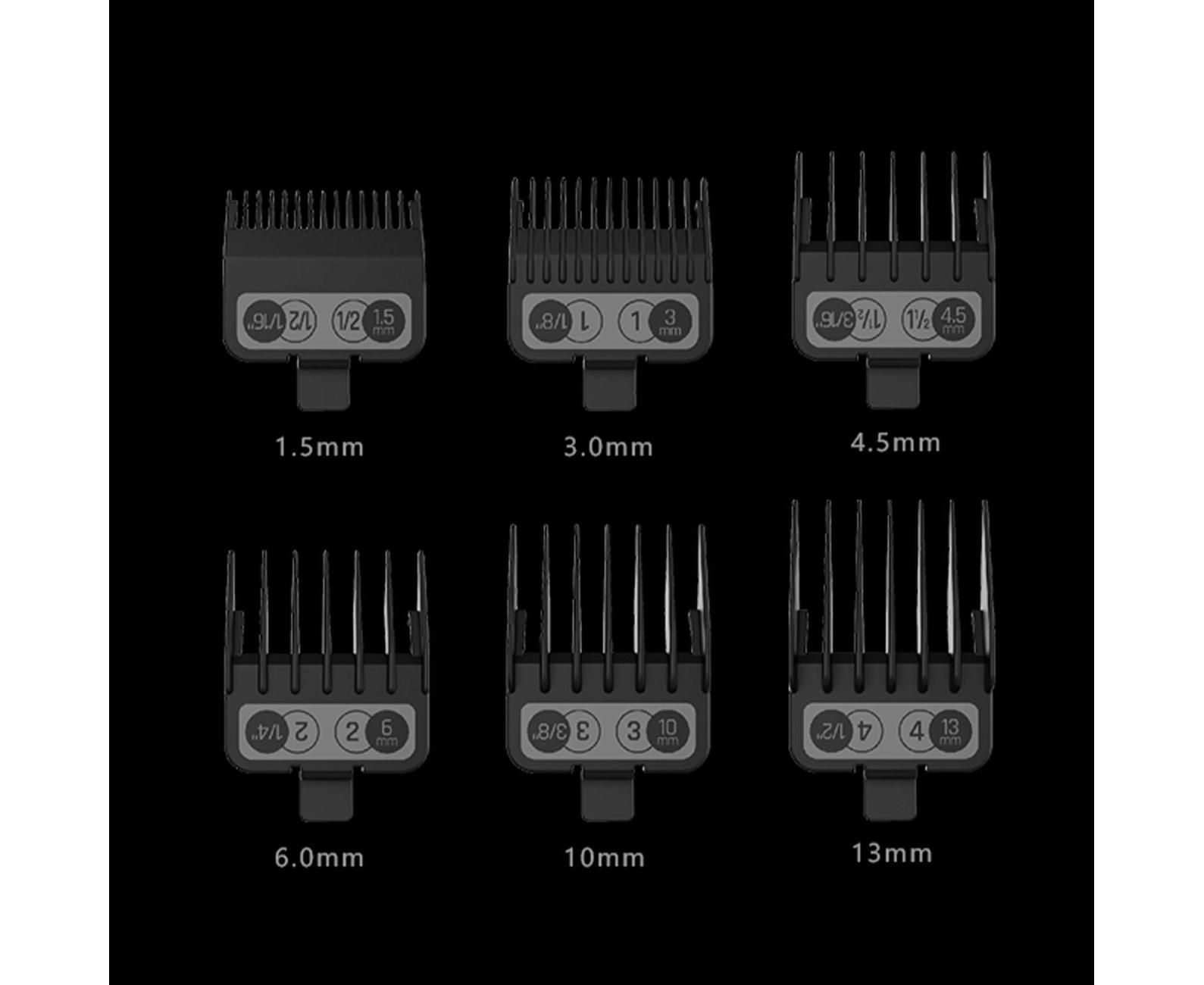 Насадки (1,5 мм/3 мм/4,5 мм/6 мм/10 мм/13 мм), USB-кабель для зарядки, щеточка, 5 мл смазки, защитный чехол для ножевого блока.