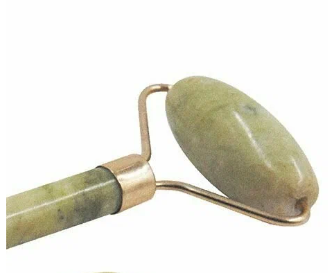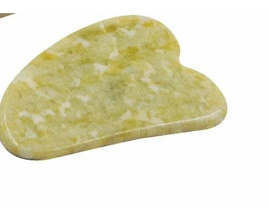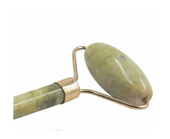 Массажный набор для лица. Материал - высококачественный натуральный камень нефрит с декором "под золото". В набор входят: двусторонний ролик - размер 15х6х4 см; скребок Гуаша - размер 7,3х5 см.