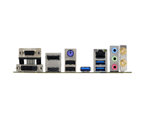 PS/2, 2 x USB 2.0, 3 x USB 3.2 Gen1, VGA, DVI, HDMI, DisplayPort, RJ-45