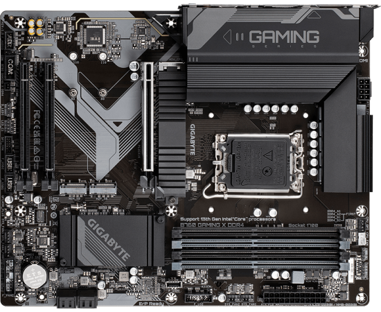 MB s1700 GigabyteB760 GAMING X DDR4, Intel®B760, 4xDDR4-3200, HDMI+DP, 3xPCI-Ex16, 4xSATA3(RAID 0/1/5/10), 3xM.2, 8Ch Audio, 2.5GLan, (4+4)xUSB2.0, (4+2)xUSB3.2, (0+1)xUSB3.2 Type-C™, ATX, RTL