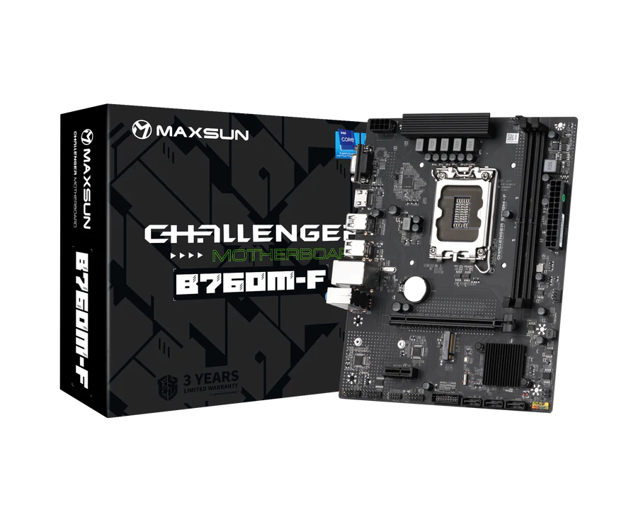 MB s1700 Maxsun MS-Challenger B760M-F (6940709699638), 2*DDR4, 1*PCIEx16, 1*PCIEx1, 1*M.2, 4*USB3.2Gen1, 6*USB2.0, 3*SATA3.0, 1G, VGA, HDMI, M-ATX, RTL