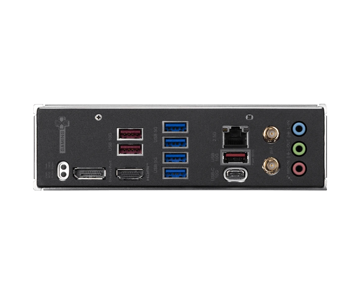 4 x USB 3.2 Gen1, 3 x USB 3.2 Gen2, USB 3.2 Gen2 Type-C, HDMI, DisplayPort, RJ-45