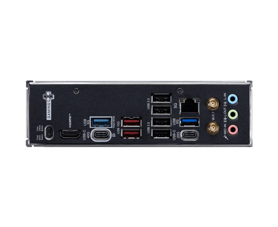 4 x USB 2.0, 2 x USB 3.2 Gen1, 2 x USB 3.2 Gen2, USB 3.2 Gen2x2 Type-C, USB 4 Type-C, HDMI, RJ-45