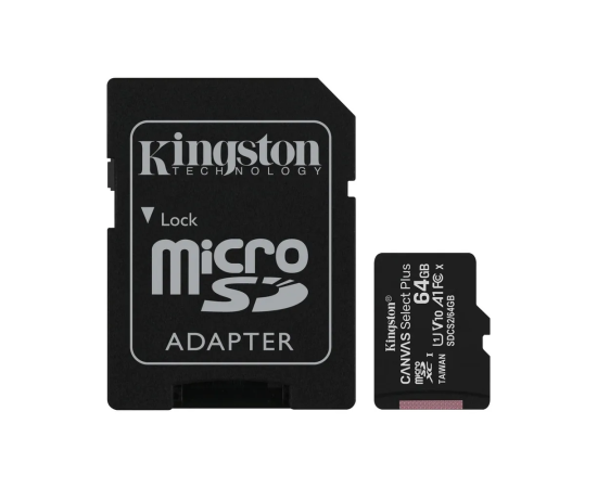 MicroSD 64GB Kingston Class 10 Canvas Select Plus A1 (100 Mb/s) + SD адаптер