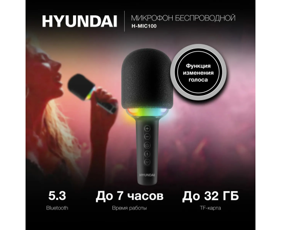 Микрофон беспроводной Hyundai H-MIC100 черный