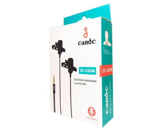Микрофон петличный CANDC DC-C6DM двойной, Jack 3.5mm, черный проводной