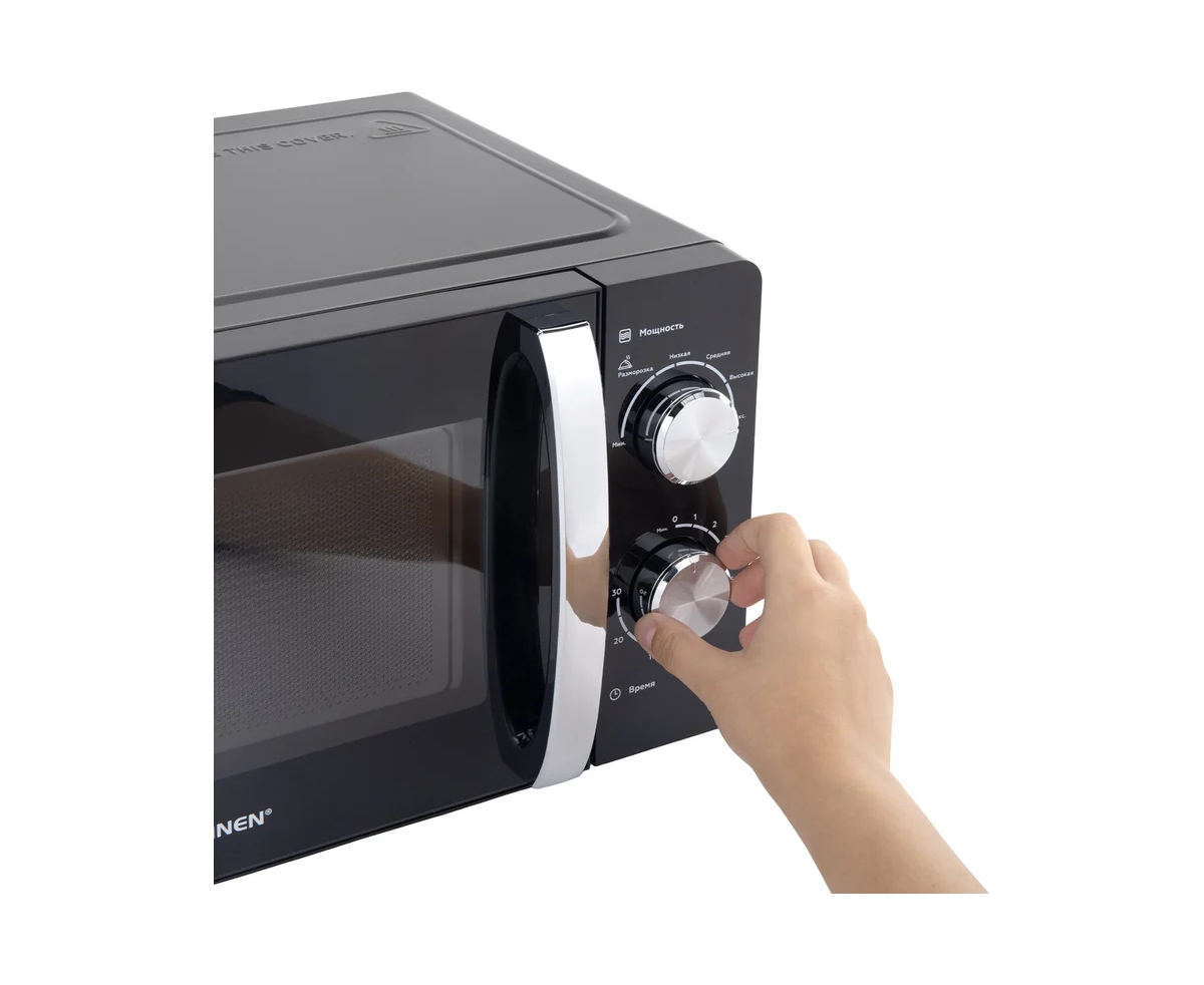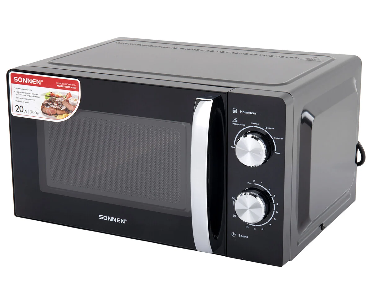 Микроволновая печь SONNEN MW2070BLCR-6MB, 20л, 700Вт, таймер, механическое управление, ручка, черная/хром