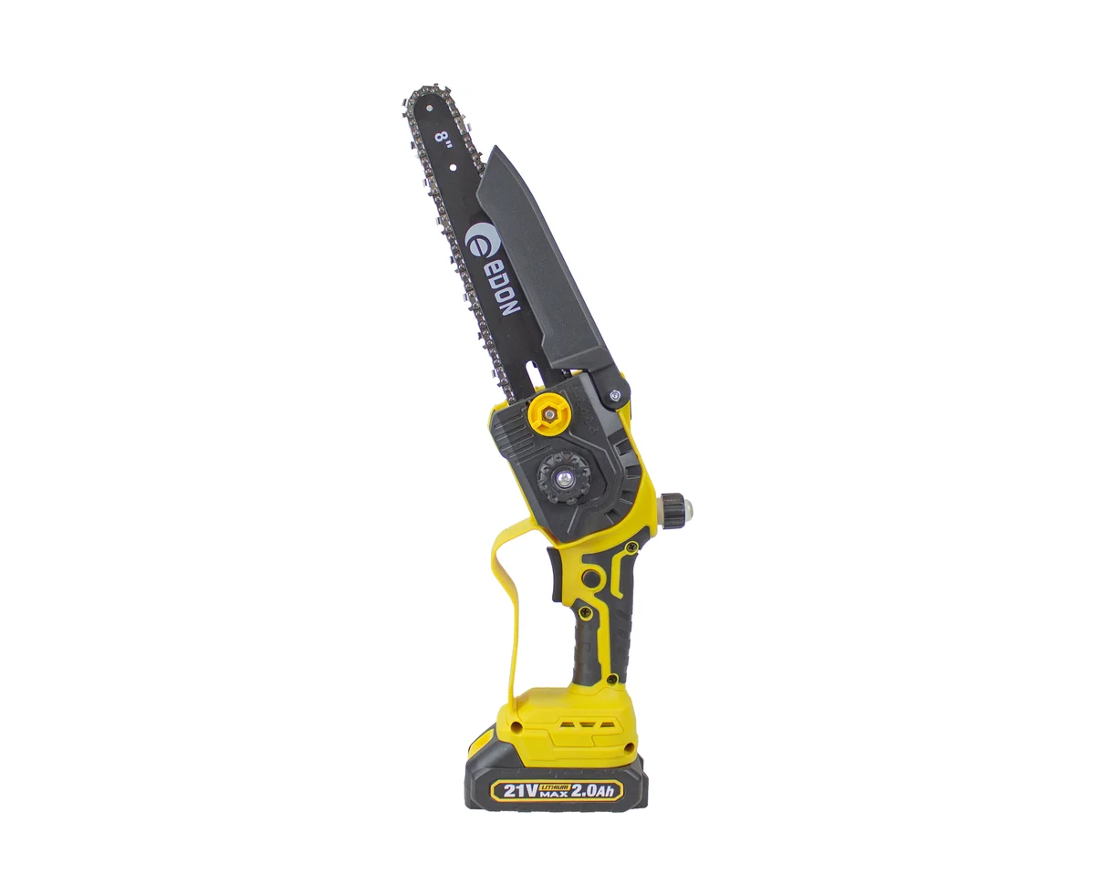 Мини-цепная пила аккумуляторная бесщеточная EDON Super NS-21/8BL 35531 предназначена для распила дерева, фанеры, ДСП. Использование мини-цепной пилы по назначению предполагает соблюдение инструкций по эксплуатации, а также необходимое техническое обслуживание. Инструмент предназначен для бытового применения. Преимущество бесщеточного двигателя: большая износостойкость инструмента. Отсутствие щеток снижает пожароопасность инструмента. Бесщеточный двигатель может в считанные секунды развить максимальную скорость за счет своего строения. В работе не подвержен перегреву.
