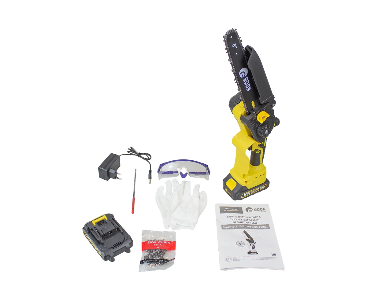 Мини-цепная пила EDON SuperNS-21/8BL (35531) 2АКБ+ЗУ