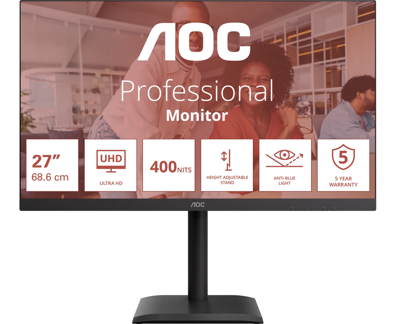 Монитор AOC U27E4CV Black 4K, IPS, 3840x2160, 60Hz, 4 ms, 178гр./178гр., 400 cd/m, +2xHDMI 2.0, +DisplayPort 1.4, DP Out, USB, USB-C, LAN, SPK