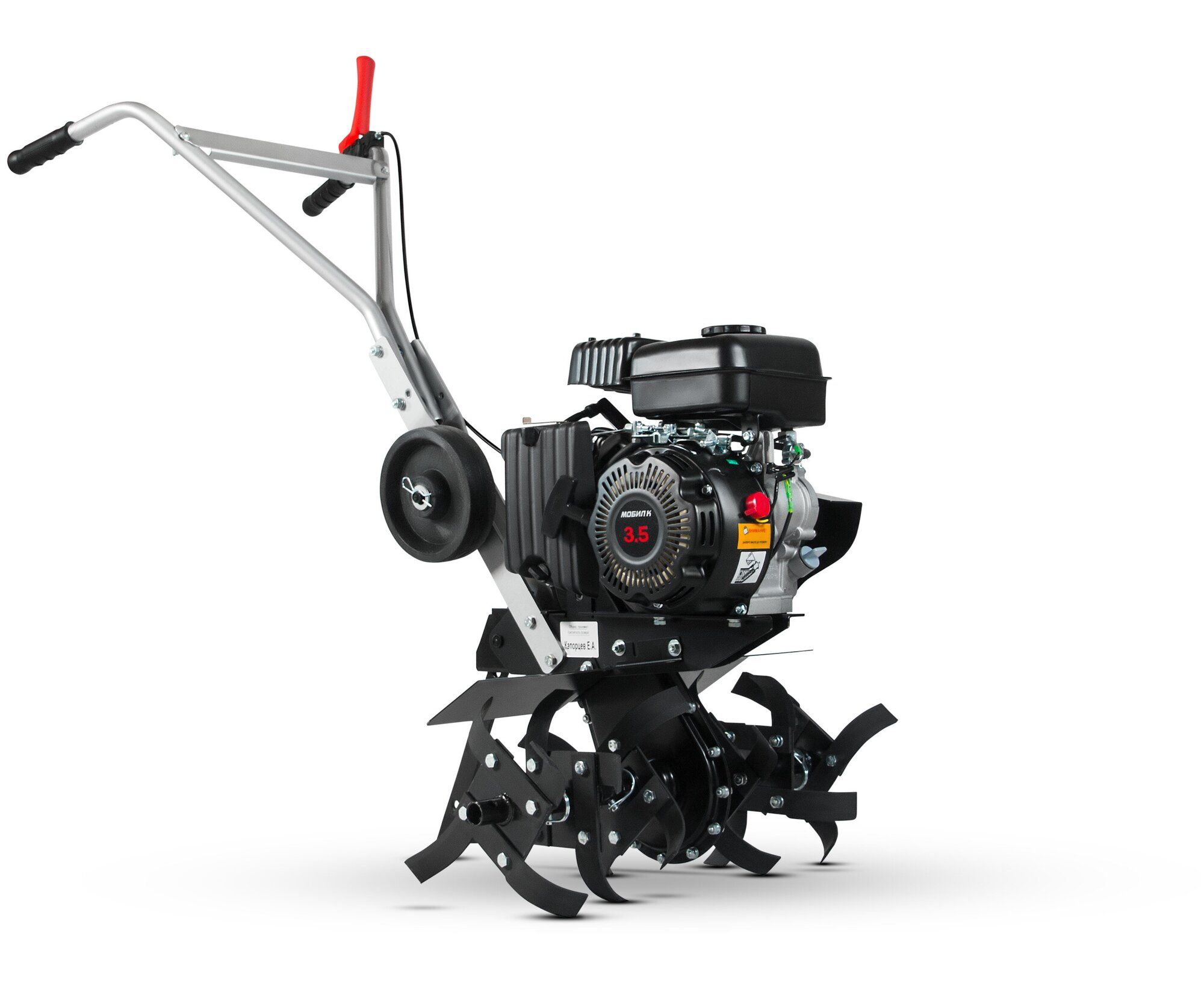 -Благодаря транспортировочному колесу культиватор легче перевозить по участку;
