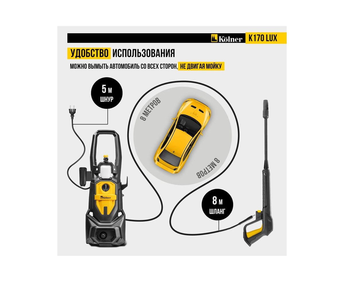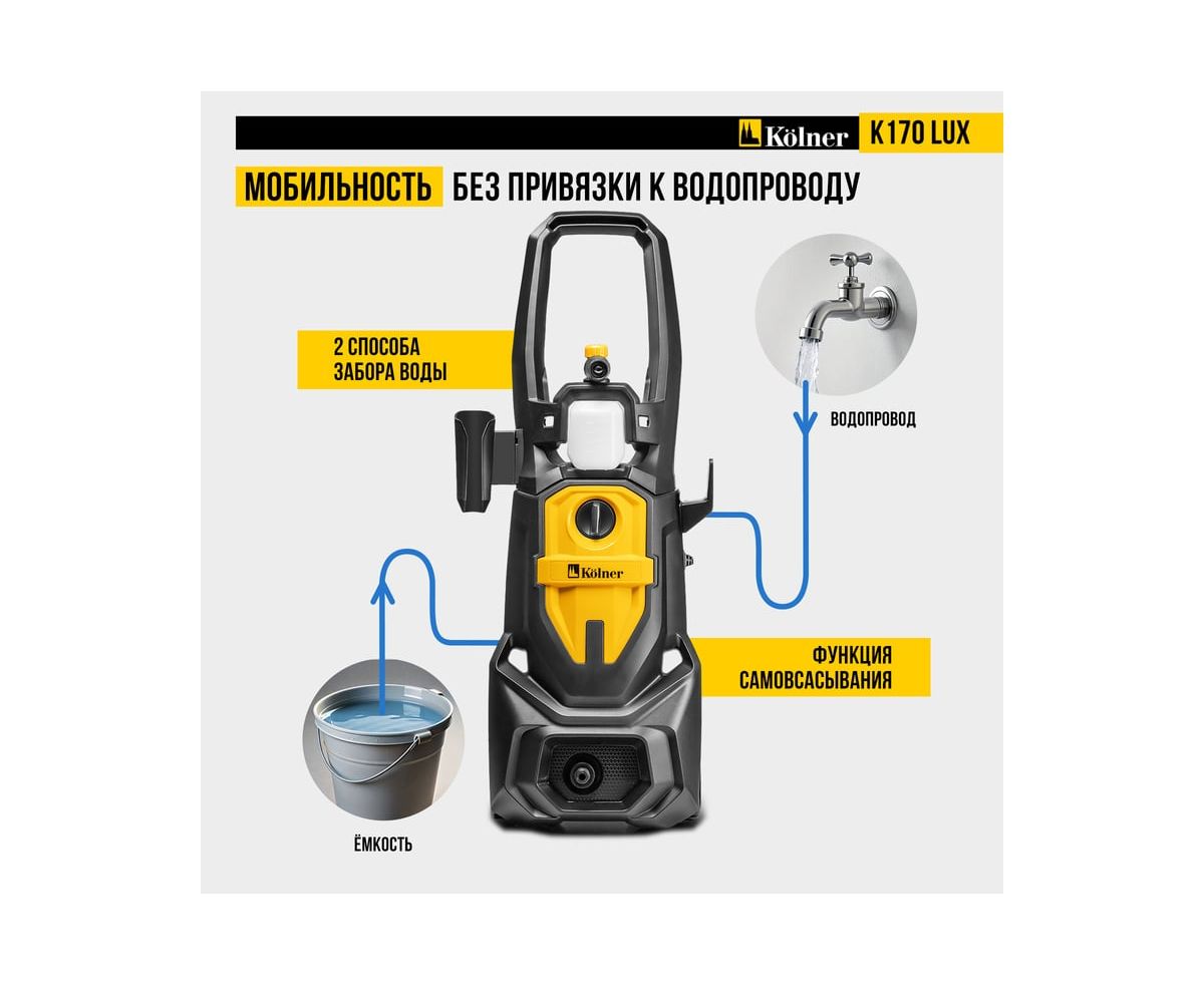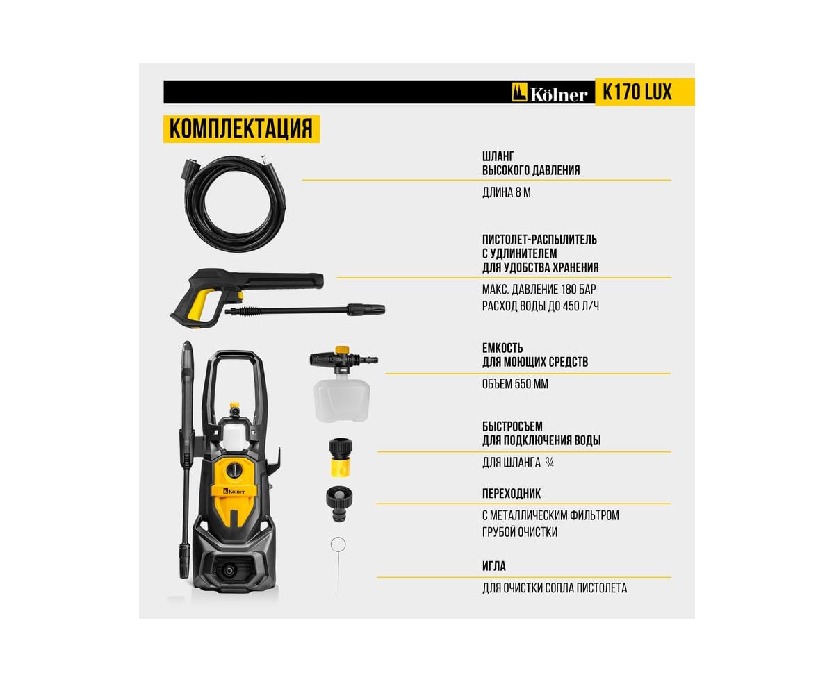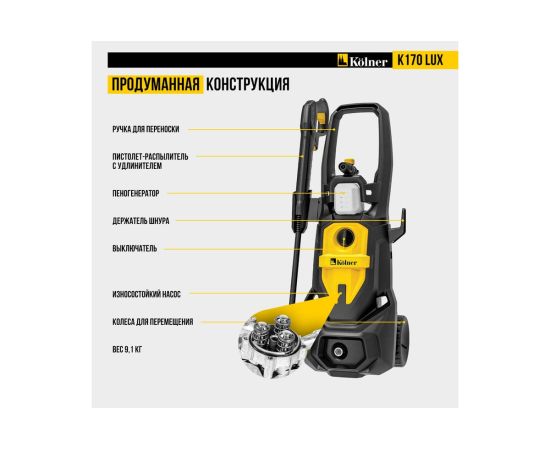 Минимойка Kolner K170 Lux — мощное и надежное решение для эффективной очистки любых поверхностей.
