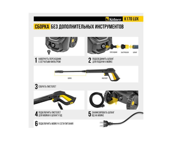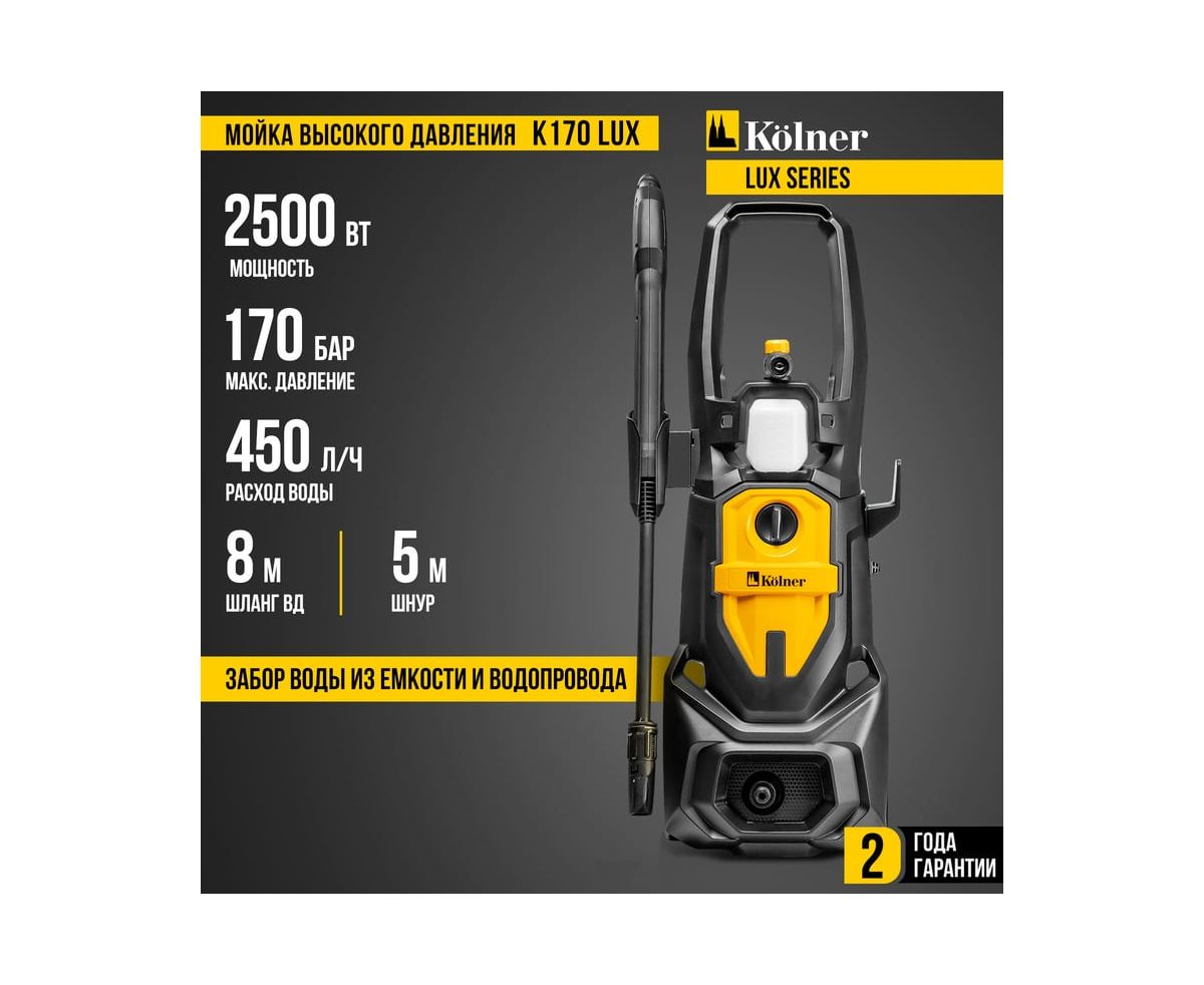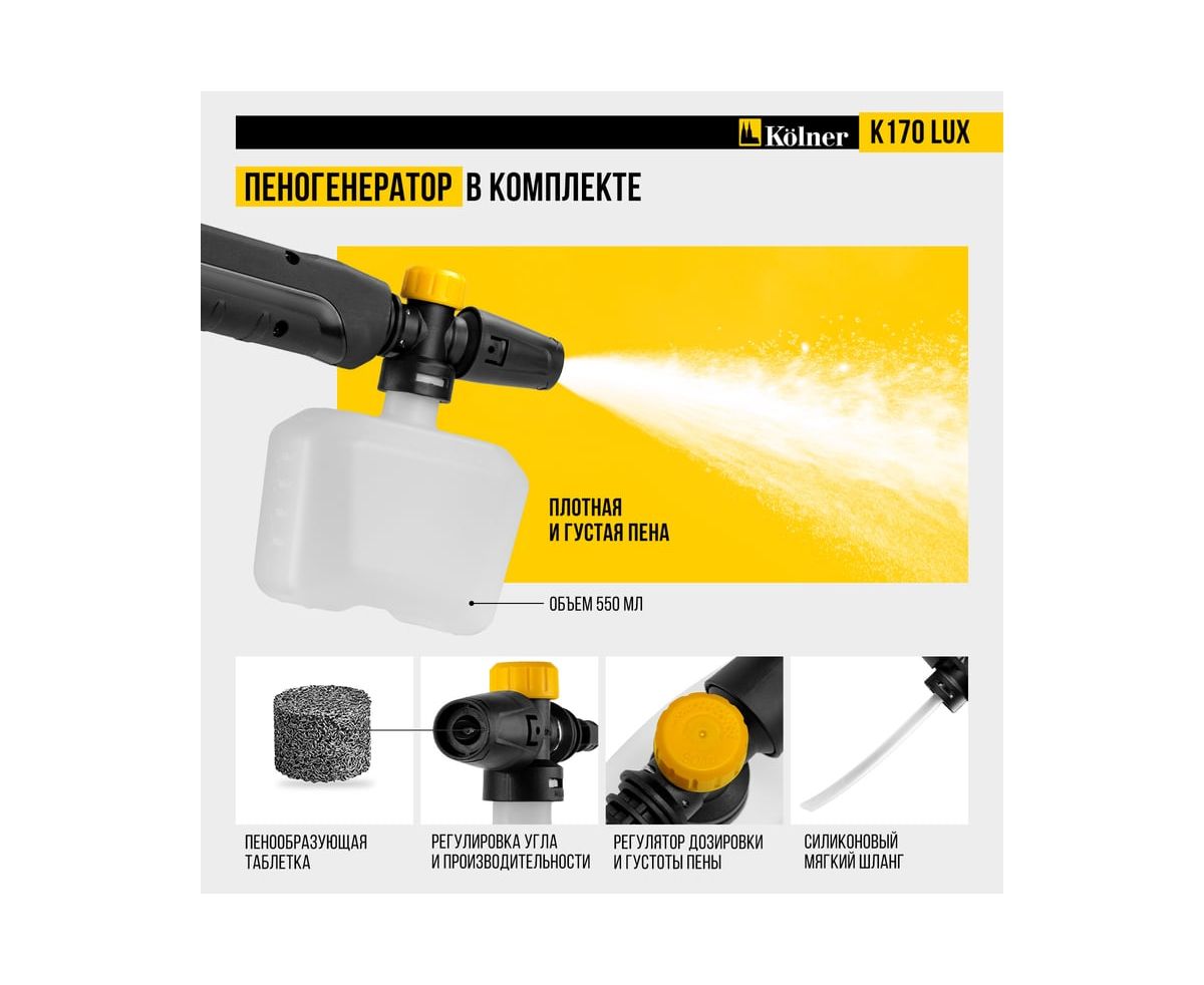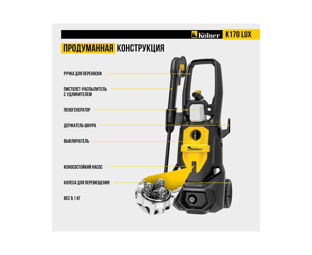Минимойка Kolner K170 Lux — мощное и надежное решение для эффективной очистки любых поверхностей.