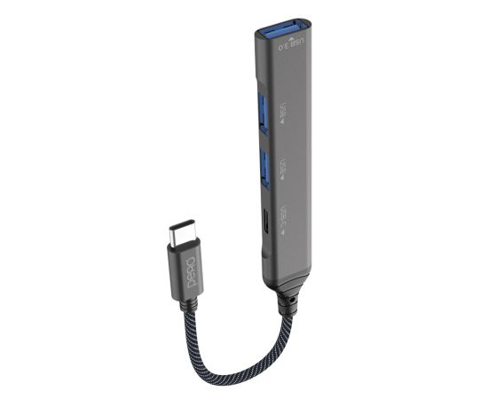 Мульти Хаб PERO MH03, USB-С TO USB-C+USB 3.0+USB 2.0+USB 2.0, серый